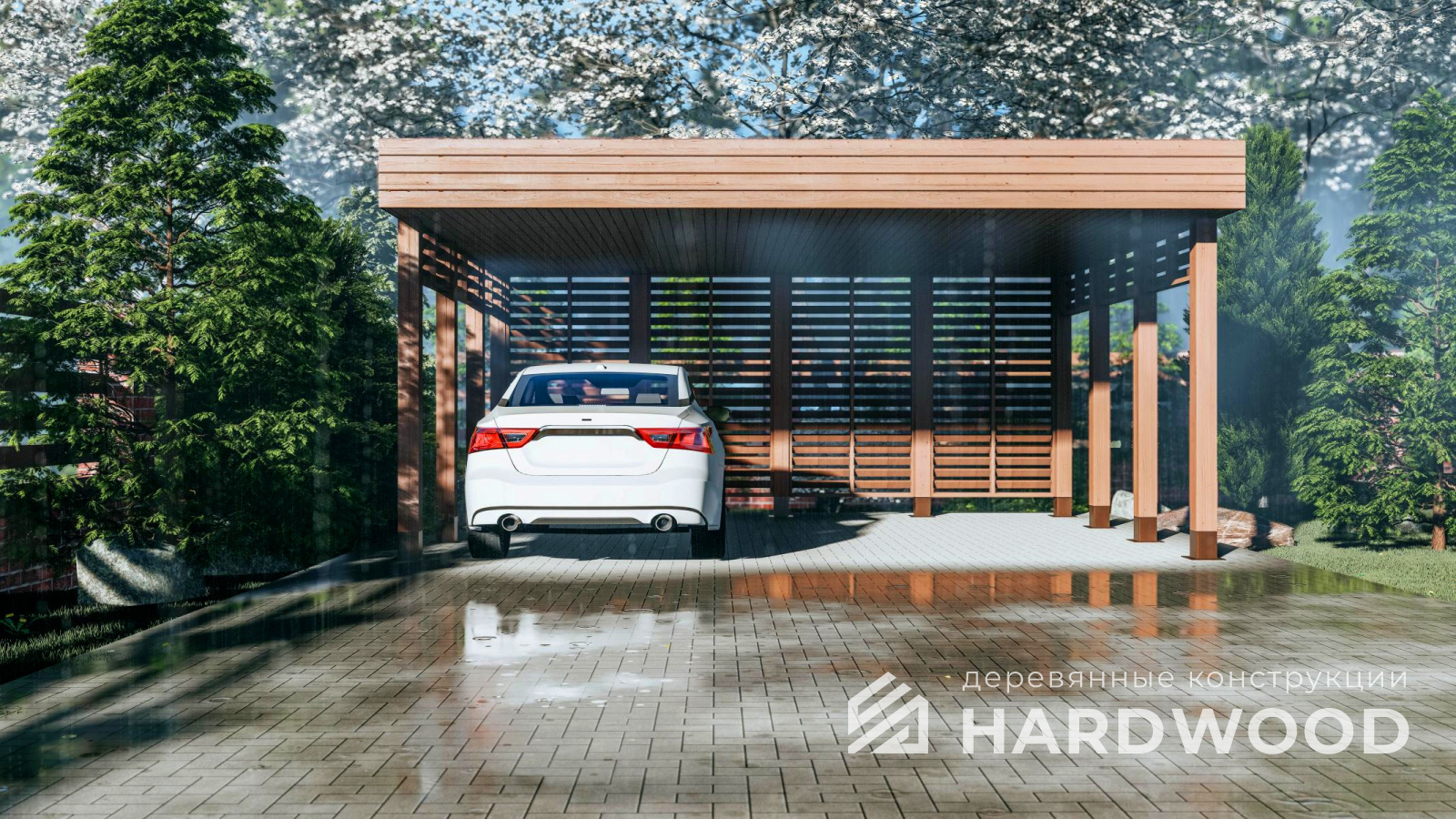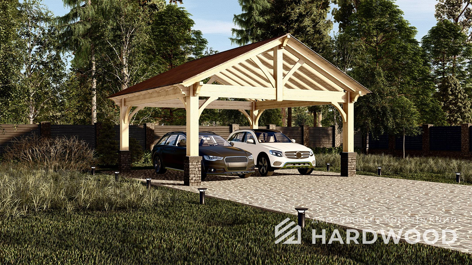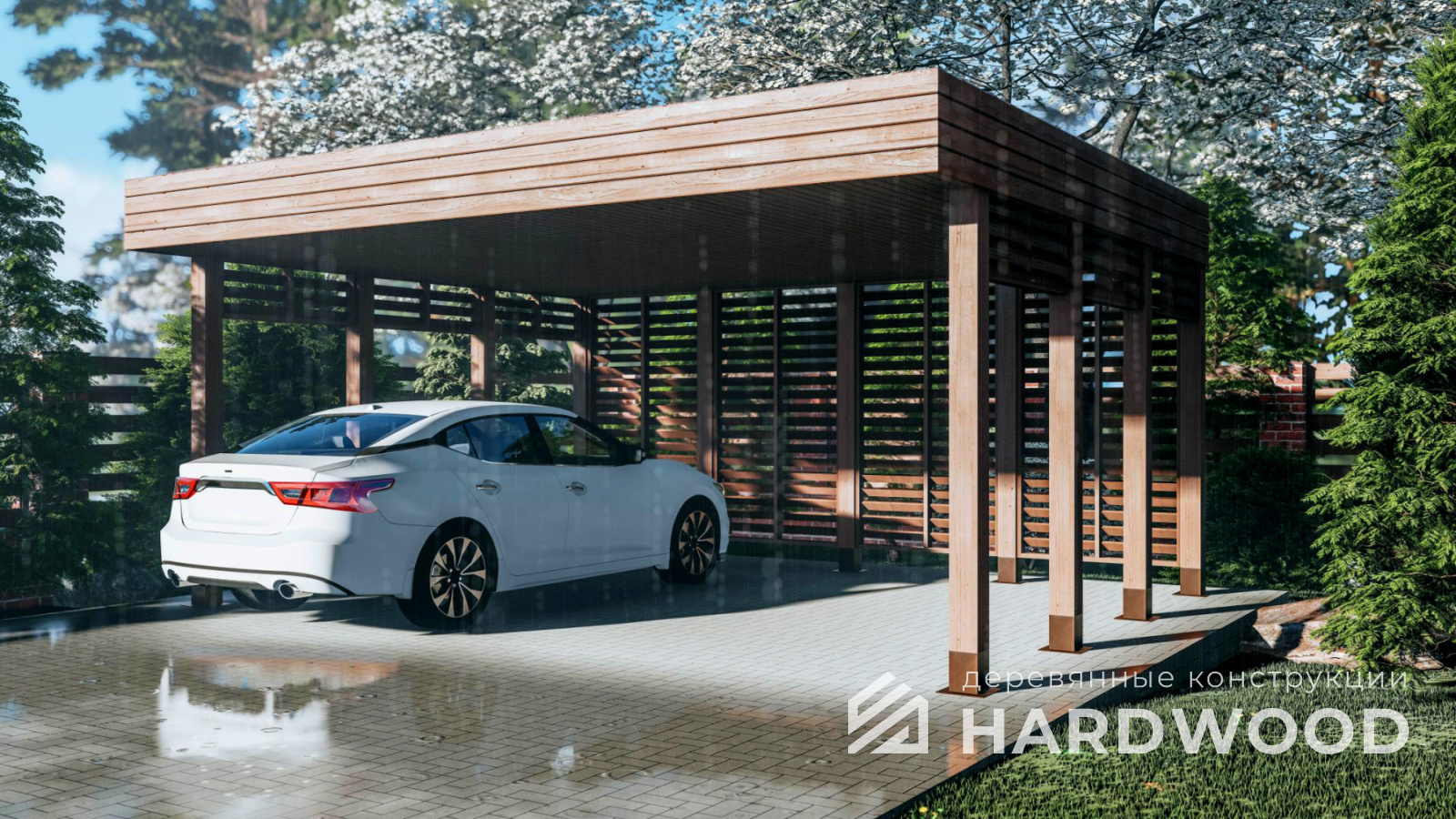 Деревянные навесы для автомобилей по акции